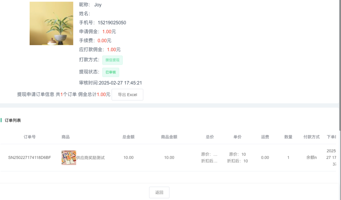 如果已经打款到账的会提示已打款,已经到账的返回列表这个按钮才会消失,没有打款到账的可以继续点击提现